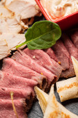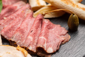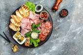 Zdjęcie "przystawka mięsna na czarnym kamieniu" może być wykorzystywane do celów osobistych i komercyjnych zgodnie z warunkami zakupionej licencji Royalty-free. Obraz jest dostępny do pobrania w jakości wysokiej rozdzielczości do 5760x3840.