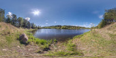 Zdjęcie "Jezioro rocky river earhtly z drzewa i niebo. jest to kompletny 360 equirectangular panoramy, które można swobodnie offsetted, powtarzający się wzór, lub remapp" może być wykorzystywane do celów osobistych i komercyjnych zgodnie z warunkami zakupionej licencji Royalty-free. Obraz jest dostępny do pobrania w jakości wysokiej rozdzielczości do 5760x3840.