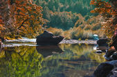 rzeka rocky z wody tak spokojny, to prawie jak jezioro. podjęte w oregon. HDR.