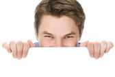 Zdjęcie "ponętna zaglądając nad biały znak" może być wykorzystywane do celów osobistych i komercyjnych zgodnie z warunkami zakupionej licencji Royalty-free. Obraz jest dostępny do pobrania w jakości wysokiej rozdzielczości do 5760x3840.