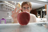 siedząc na powierzchni białe smugi światła obraz nad i wokół jabłka jabłko.