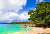 tropikalnej plaży cote d'or na wyspie praslin, Seszele