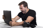 człowiek uwięziony wewnątrz tv, krzyk o pomoc uzyskać