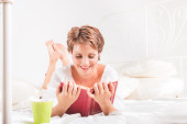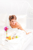 Zdjęcie "najpiękniejszą kobietą o śniadanie w łóżku biały" może być wykorzystywane do celów osobistych i komercyjnych zgodnie z warunkami zakupionej licencji Royalty-free. Obraz jest dostępny do pobrania w jakości wysokiej rozdzielczości do 5760x3840.
