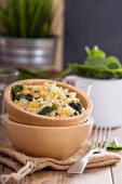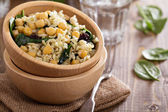Sałatka z ryżu, ciecierzycy, szpinaku, rodzynki