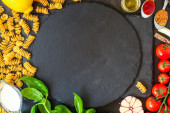 widok z góry na składniki makaronu z grzybami