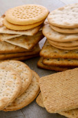 kilka krakersów rundy Maślanka, starannie ułożone w rzędach.