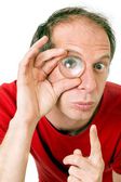 ciekawy fachura biały mężczyzna zdejmuje okulary ściśle sprawdzić, zbadać i badanie jego dochodzenia.