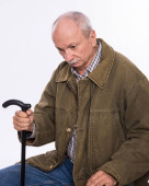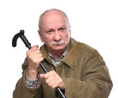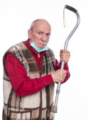 Stara kobieta zagniewany zagrażających z trzciny cukrowej