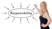 biznes kobieta pisze listy odpowiedzialność in blanco. Biuro tło.