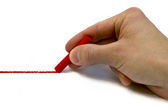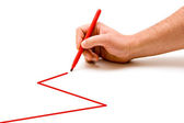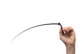 ręka trzyma czarny marker, rysunek idealnie prosto Czarna linia na białym tle