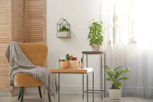 Zdjęcie "Stylowy drewniany stół i krzesła w pokoju. Projekt wnętrza" może być wykorzystywane do celów osobistych i komercyjnych zgodnie z warunkami zakupionej licencji Royalty-free. Obraz jest dostępny do pobrania w jakości wysokiej rozdzielczości do 5760x3840.