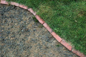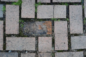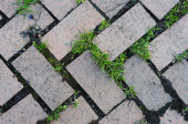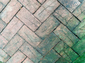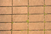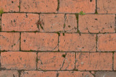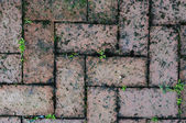 stary wzór cegły w projekt zygzaka z trawa rośnie od pęknięcia