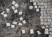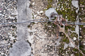 stary wzór cegły w projekt zygzaka z trawa rośnie od pęknięcia