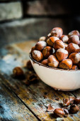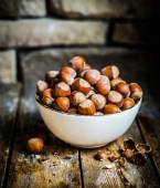orzechy laskowe na rustykalne drewniane tła
