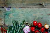 Różne zioła i przyprawy na drewnianym tle. Widok z góry.