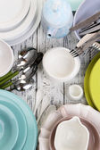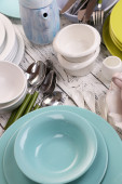 różne naczynia na drewnianym stole