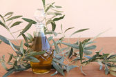 ekstra oliwa z oliwek i octu balsamicznego na drewnianym stole