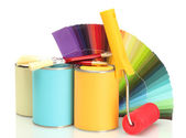 farby, pędzel i próbki na białym tle na białym tle