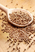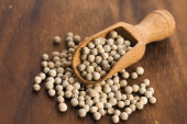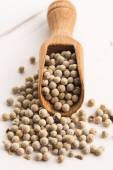 Zbliżenie białej papryki na drewnianej łyżeczce. Kontekst żywności.