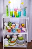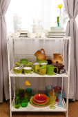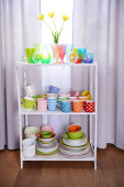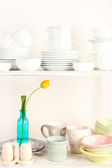 różne naczynia na półce w wnętrza