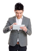 biznesmen korzystający z laptopa
