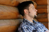 młody dorosły kaukaski rolnik biały człowiek wychodzi rozbite okno wewnątrz jego stary stodoła.