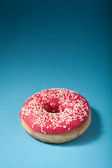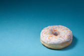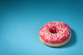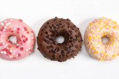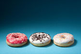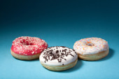 widok z góry trzech pączków na białym tle na niebieskim tle z copysp