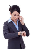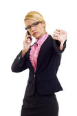 młody biznes kobieta skrzyżowane kciuki w dół nad białym