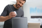 Mężczyzna naprawy nowoczesny okap kuchenny w kuchni