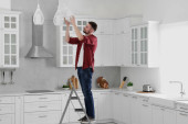 Zdjęcie "Mężczyzna naprawy nowoczesny okap kuchenny w kuchni" może być wykorzystywane do celów osobistych i komercyjnych zgodnie z warunkami zakupionej licencji Royalty-free. Obraz jest dostępny do pobrania w jakości wysokiej rozdzielczości do 5760x3840.