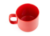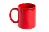 Czerwony kubek do kawy i herbaty na białym tle.