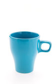 Niebieski kubek do kawy i herbaty na białym tle.