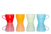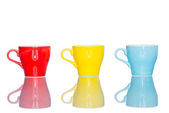 Kolorowe kubki do kawy i herbaty na białym tle. Miejsce na tekst.