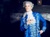 aktor przebrany za arystokratę z XVIII wieku w peruce