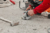 Zdjęcie "Pracownicy mielą betonową podłogę na placu budowy. Przygotowuje podłogę do zaprawy poliuretanowej" może być wykorzystywane do celów osobistych i komercyjnych zgodnie z warunkami zakupionej licencji Royalty-free. Obraz jest dostępny do pobrania w jakości wysokiej rozdzielczości do 5760x3840.
