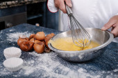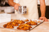 mężczyzna ręce posypywanie słodycze z cukrem pudrem