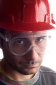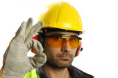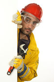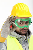 Pracownik kontroli pionowe poziom z poziomu narzędzia bańki