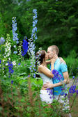 Szczęśliwa młoda para dorosłych w miłości na polu. dwa, człowiek i wom