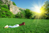 Szczęśliwa młoda para dorosłych w miłości na polu. dwa, człowiek i wom