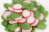 Zdjęcie "Sałatka z rzodkiewki i szpinak z bliska." może być wykorzystywane do celów osobistych i komercyjnych zgodnie z warunkami zakupionej licencji Royalty-free. Obraz jest dostępny do pobrania w jakości wysokiej rozdzielczości do 5760x3840.