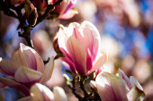 Magnolie kwitną w kwietniu, wznoszące się magnolie