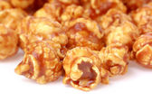 karmelowe popcorn tło. Złoty karmelowy popcorn z bliska. Tło popcornu. Przekąski i jedzenie na film