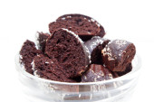 Smaczne czekoladowe babeczki na białym tle. Czekoladowa babeczka karmelowa i syrop karmelowy. Babeczka czekoladowa izolowana na białym.