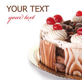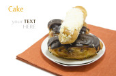 Smaczne czekoladowe babeczki na białym tle. Czekoladowa babeczka karmelowa i syrop karmelowy. Babeczka czekoladowa izolowana na białym.