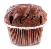 Smaczne czekoladowe babeczki na białym tle. Czekoladowa babeczka karmelowa i syrop karmelowy. Babeczka czekoladowa izolowana na białym.