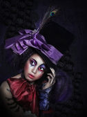 cyrk. błazen z fantazyjnym makeover w głupi kapelusz