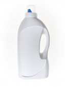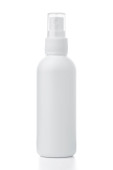 Detergenty do domu. Środki czyszczące. Biała butelka z plastikowym sprayem izolowana na białym tle.