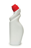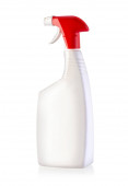 Detergenty do domu. Środki czyszczące. Biała butelka z plastikowym sprayem izolowana na białym tle.