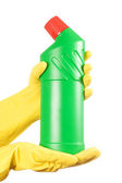 Detergenty do domu. Środki czyszczące. Biała butelka z plastikowym sprayem izolowana na białym tle.